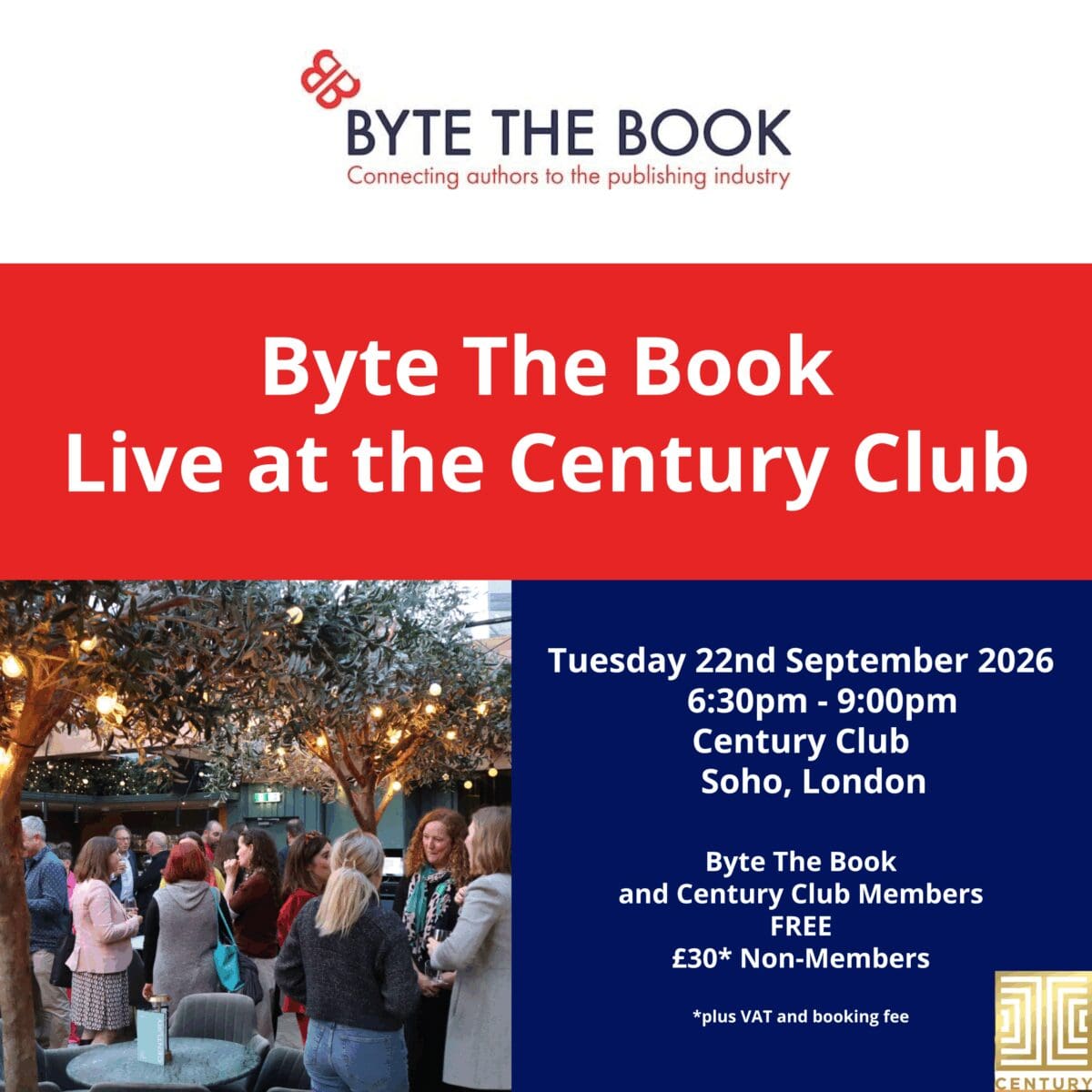 Entrance is free for Byte the Book and Century Club members. Tickets are £30 plus booking fee and VAT for everyone else. Booking is essential.