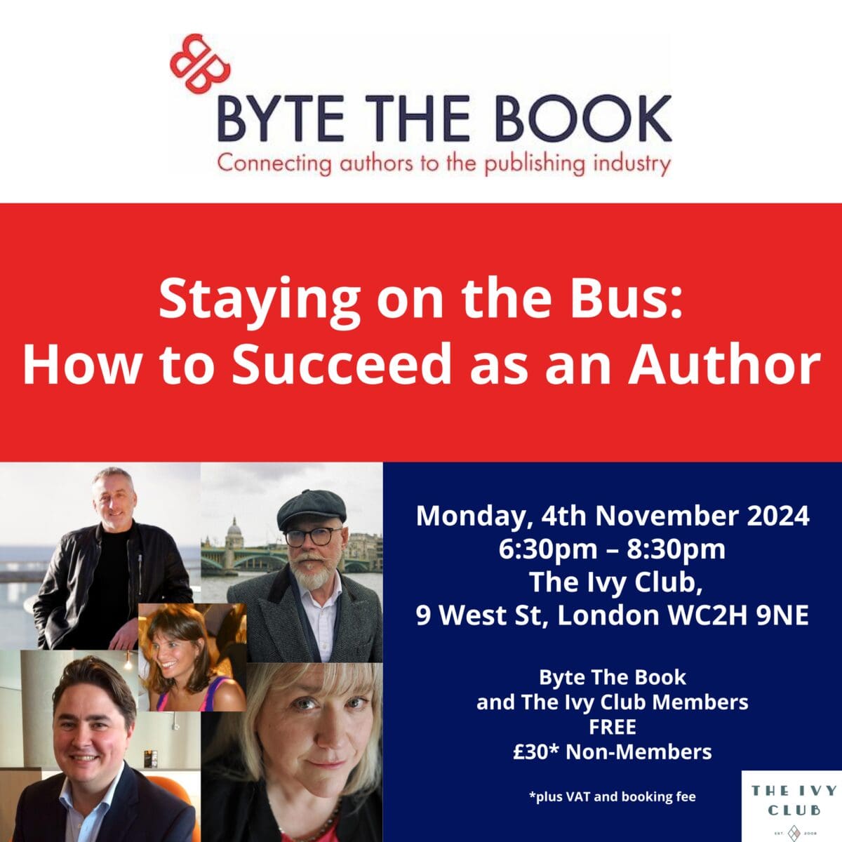 Entrance is free for Byte The Book and The Ivy Club members, for everyone else it's £30 plus VAT and Booking Fee. Booking is essential.